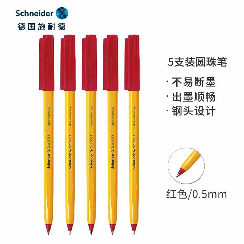 德国施耐德(Schneider)圆珠笔0.5mm办公子弹头原子笔经典黄杆进口505F 5支装