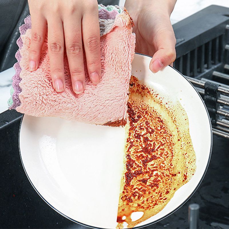 海斯迪克 HK-850 双色吸水抹布厨房不沾油洗碗布 擦碗百洁布双层加厚清洁巾25*25cm(10块)