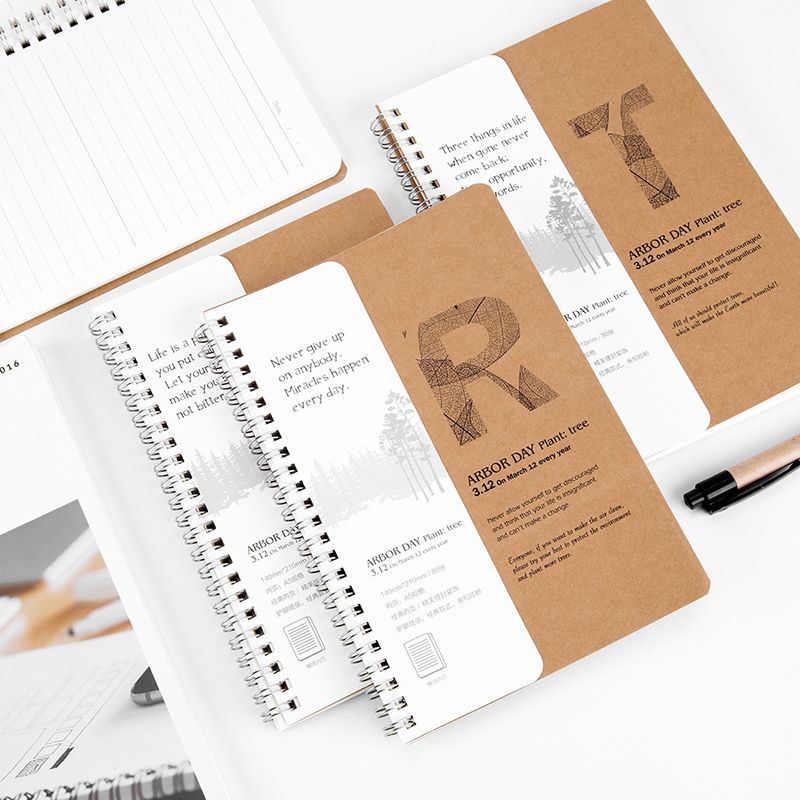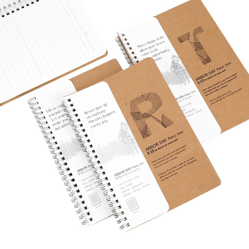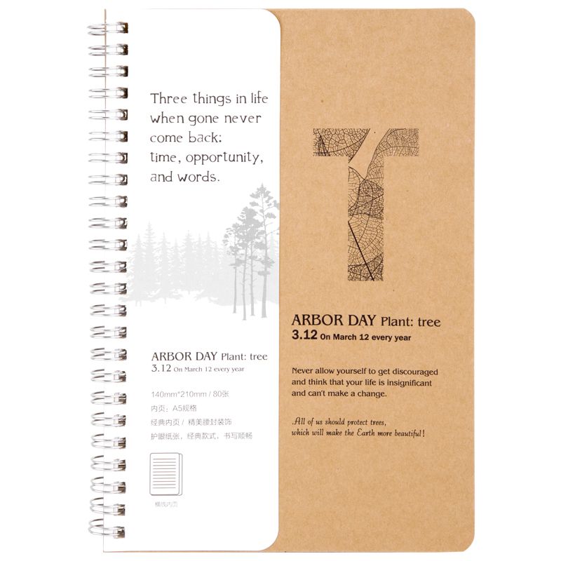 广博(GuangBo)4本装80张A5牛皮纸线圈本/螺旋装订笔记本子记事本文具4图混装 TREE FB60507