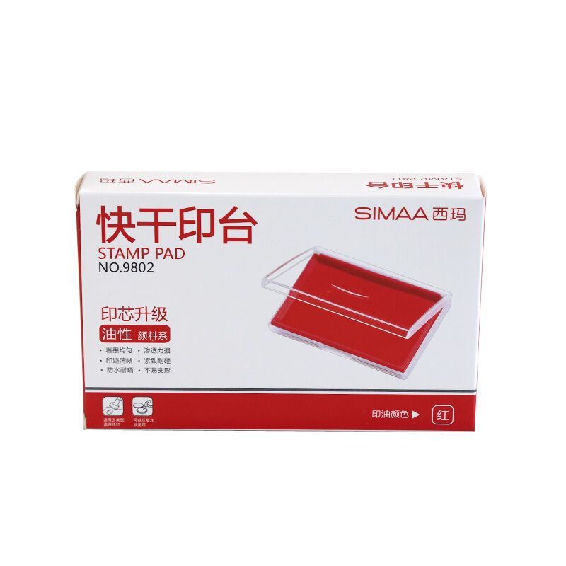 西玛(SIMAA)135*86mm 快干印台印泥 财务办公用品 红色方形透明外壳 9802