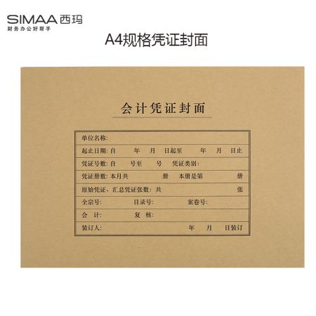 西玛(SIMAA)A4凭证封面封皮 25套/包 木浆120g 212*299mm FM151 配套A4记账凭证纸报销粘贴单据