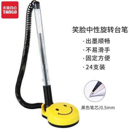 天章办公(TANGO)笑脸中性旋转台笔0.5mm 柜台桌面专用/可粘贴台式中性笔