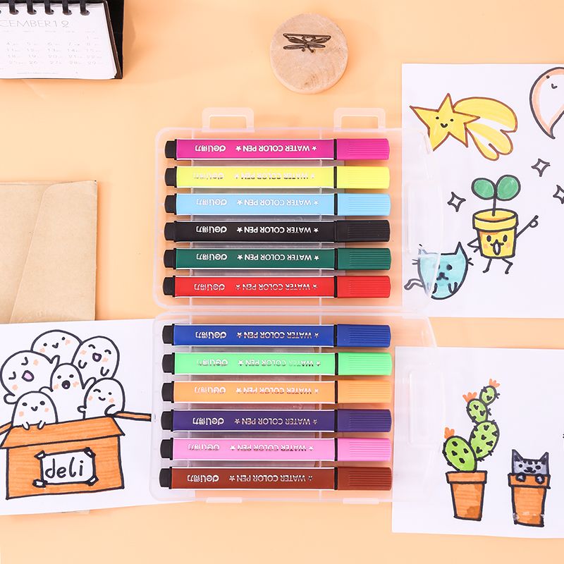 得力(deli)可水洗水彩笔 学生儿童画画 绘画勾线涂色颜色文具玩具美术用品画材