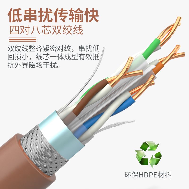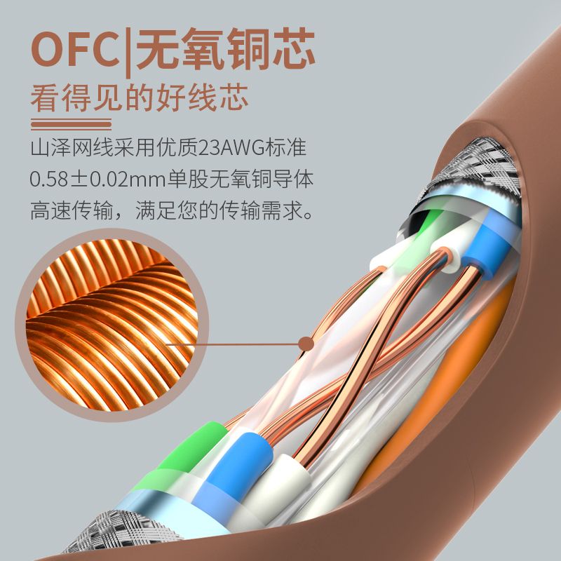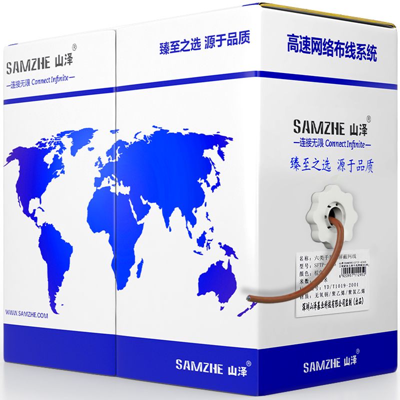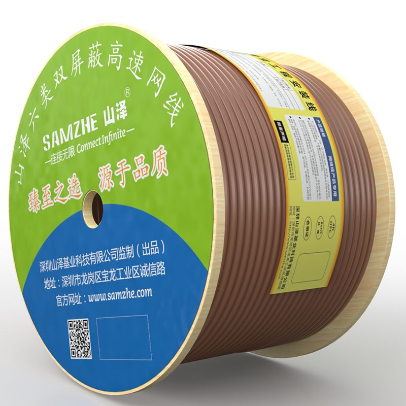 山泽(SAMZHE)六类网线双屏蔽【工程0.58mm无氧铜芯】CAT6千兆抗干扰降衰家装布线100米/箱棕色SFTP-6100