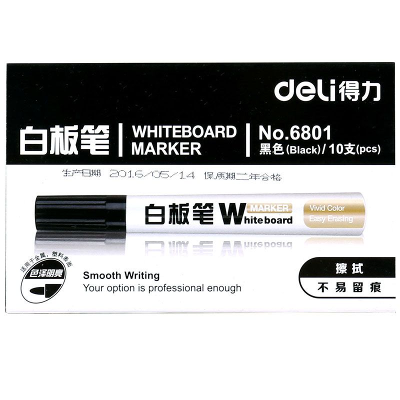 得力(deli)可擦白板笔大容量白板用笔 水性白板笔 黑色/10支装/6801