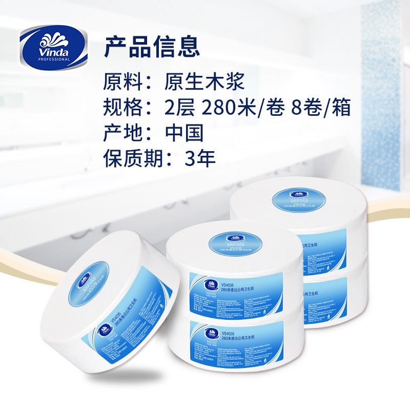 维达(Vinda) 卷纸 2层280米*8卷大卷纸 大盘纸节省成本 商用家用商场酒店物业办公卫生纸厕纸 整箱销售