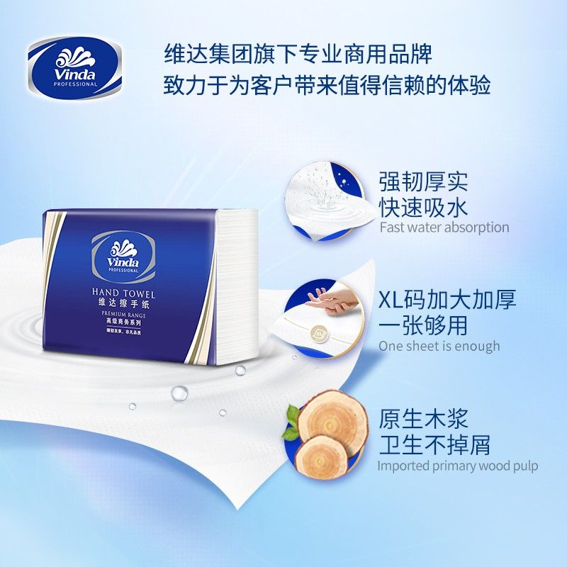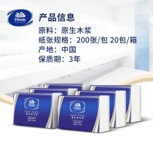 维达(Vinda) 抽纸 200抽*20包擦手纸 XL码加大 酒店厨房餐厅卫生间可用纸巾222mm*226mm 整箱销售VS2056