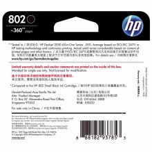 惠普(HP)802原装墨盒 适用hp deskjet 1050/2050/1010/1000/2000/1510/1511打印机 黑色墨盒