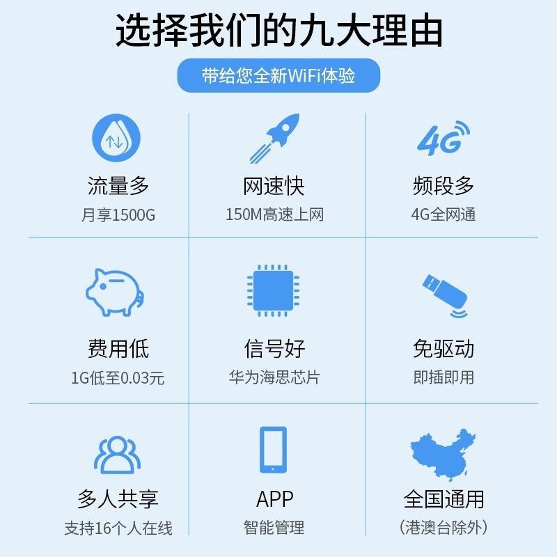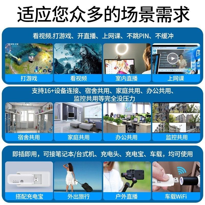 华为wifi2 mini数据卡三网移动电信联通 4G无线上网卡终端E8372 USBmifi【月享1200G一年流量套餐】