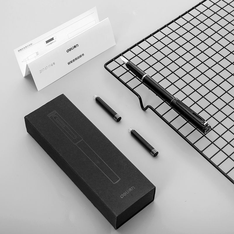 得力发现者EF明尖钢笔墨水笔 办公商务签字笔黑 S668EF