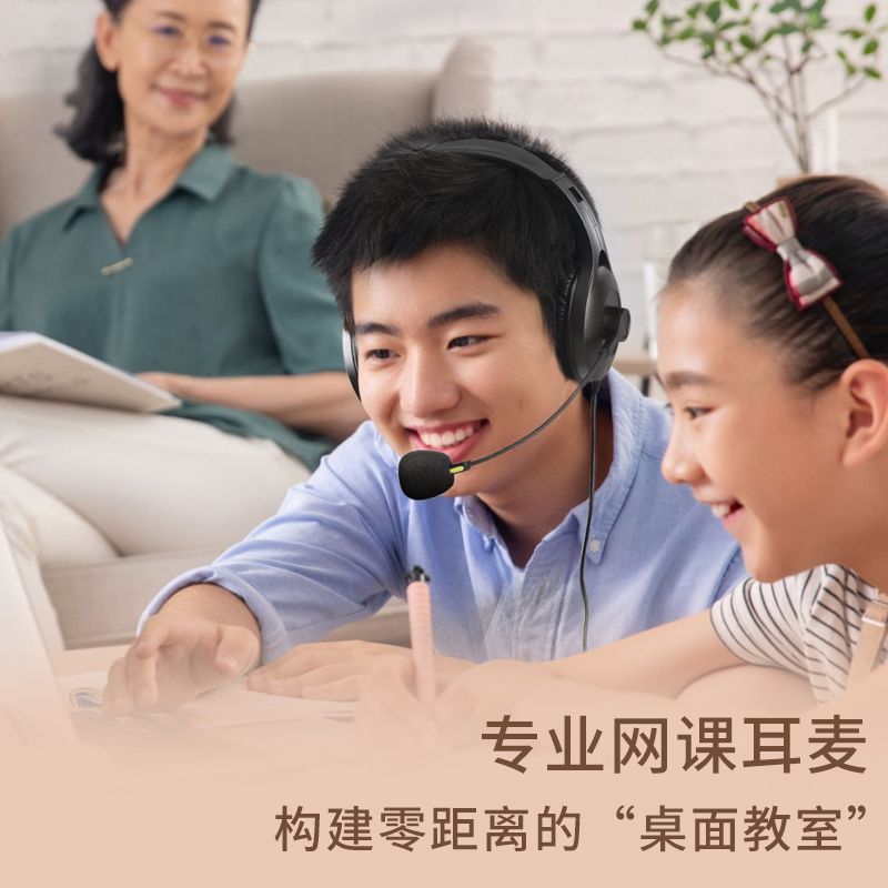 漫步者(EDIFIER)USB K810 学生网课耳麦 头戴式电脑耳机 教育耳机 听力听说口语训练专用耳麦 黑色