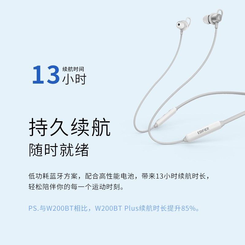 漫步者(EDIFIER)W200BT Plus 磁吸入耳式 无线运动蓝牙线控耳机 手机耳机 音乐耳机 带麦可通话 (颜色随机)
