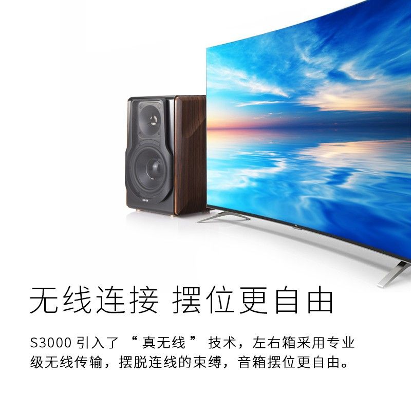漫步者(EDIFIER)S3000 新旗舰 无线HIFI 书架式立体声有源音箱 客厅音响 电视音响