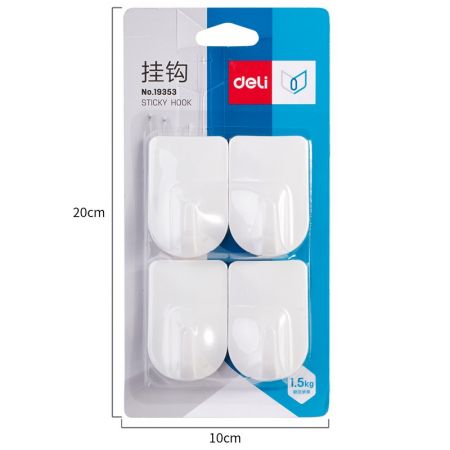 得力(deli) 19353 强力粘胶挂钩 挂衣钩 厨房浴室墙壁免钉门后挂衣钩 4只/卡(承重1.5kg)