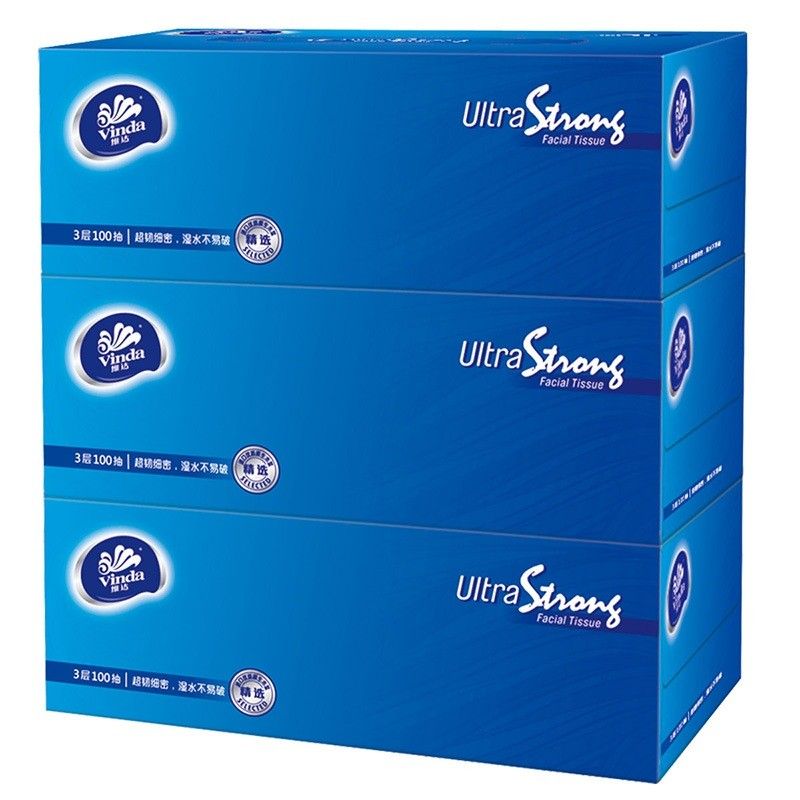 维达(Vinda)硬盒抽纸盒装威牌面巾纸抽纸纸巾商务办公车载家用纸巾整箱实惠餐巾纸 V2260-3层100抽*36盒