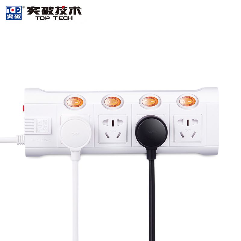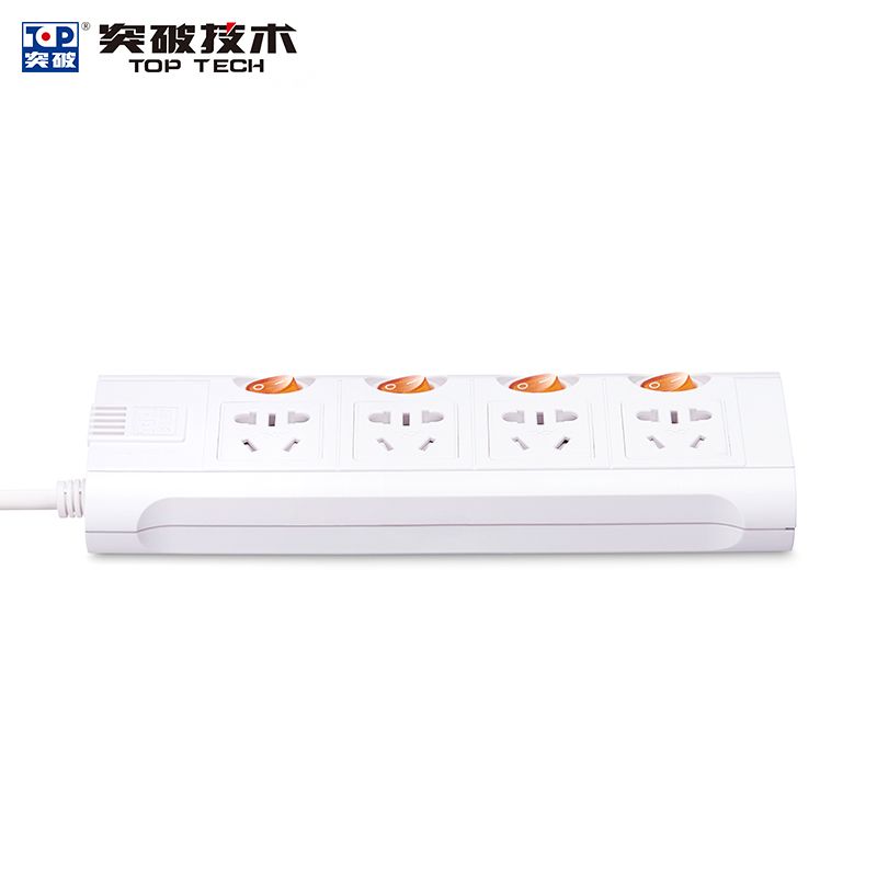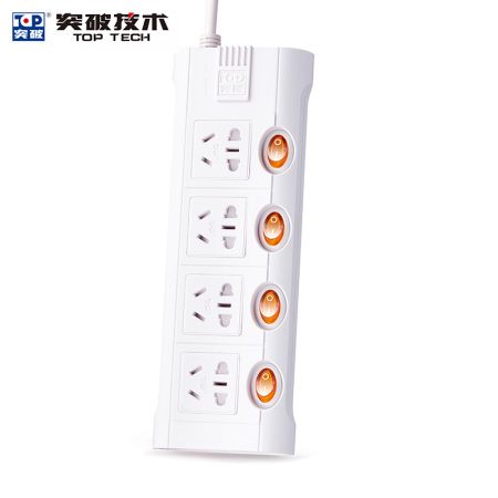 突破(TOP) TZ-D4K4新国标带儿童保护门插座插板接线板过载自动断电分控独立开关4孔3米 3米线长