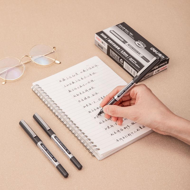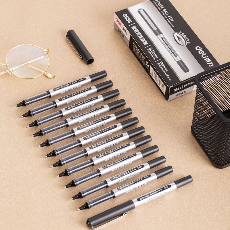 得力(deli)直液笔中性笔 0.5mm子弹头签字笔学生考试笔走珠笔水笔 黑色 办公用品12支/盒S656