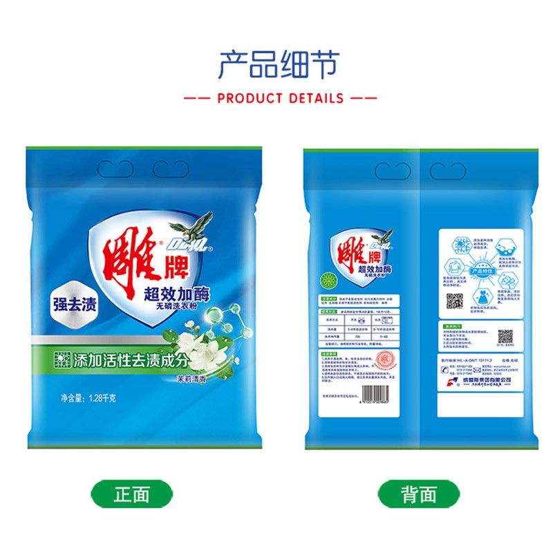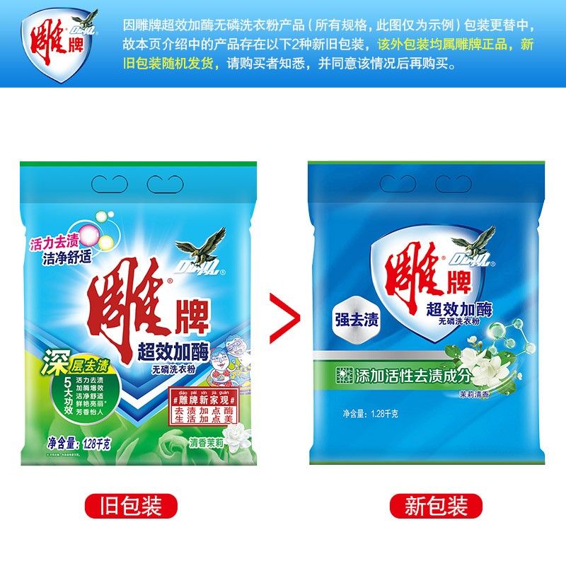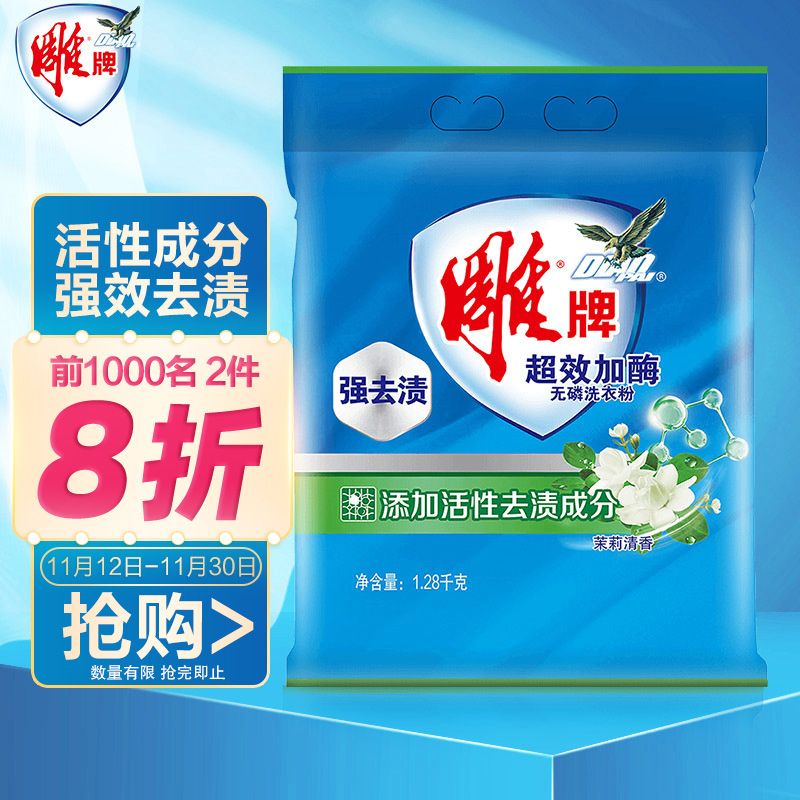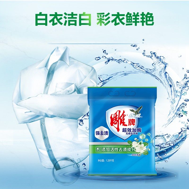 雕牌 超效加酶洗衣粉1.28kg 茉莉清香 强效去渍 添加活性去渍成分 深层去污 白衣洁白 彩衣鲜艳 保持柔软