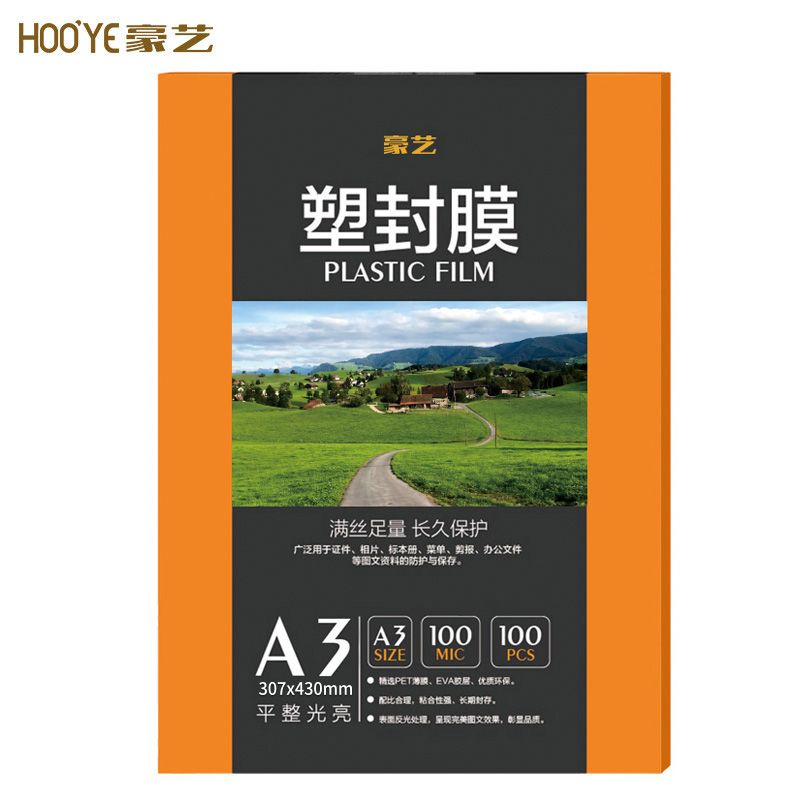 豪艺(HOOYE)A3 100mic 文件照片高透塑封膜/护卡膜/过塑膜 耐用加厚 100张/包