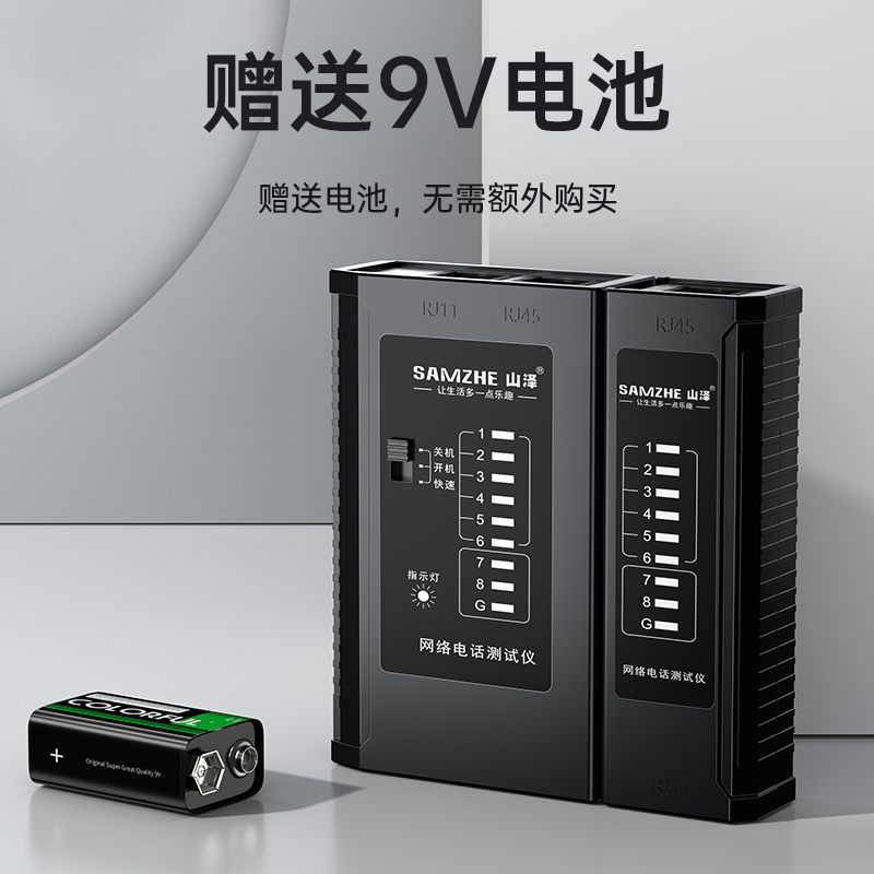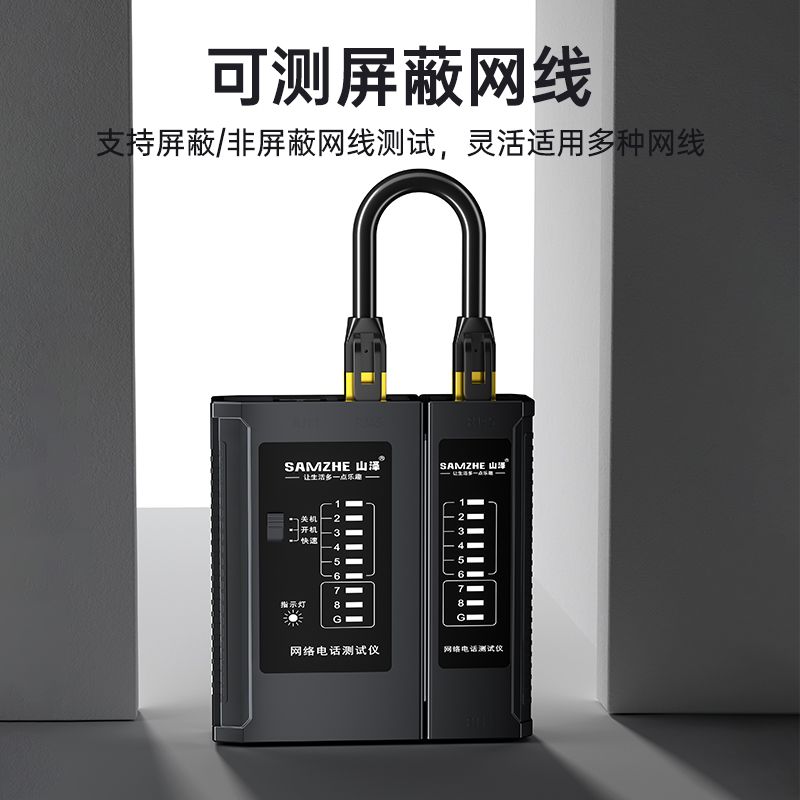 山泽(SAMZHE)网线测试仪 多功能测线仪电脑网络水晶头电话线工程 家用智能测试测通器 黑色CS-50