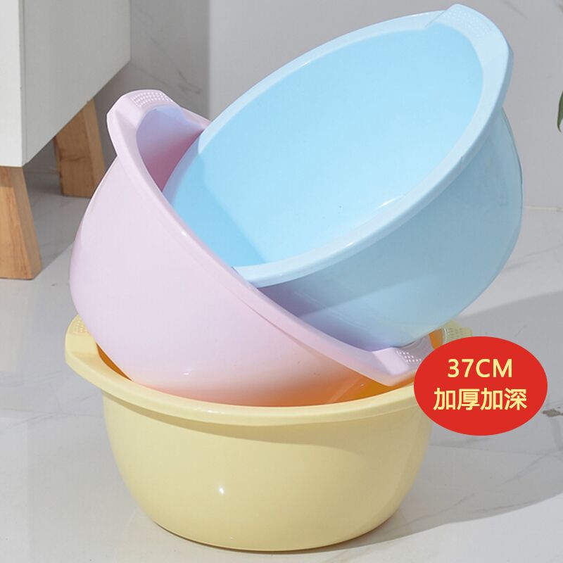 妙然大号加厚加深洗脸盆婴儿盆耐摔家用37cm泡脚塑料盆洗菜盆面盆单个 颜色随机