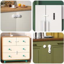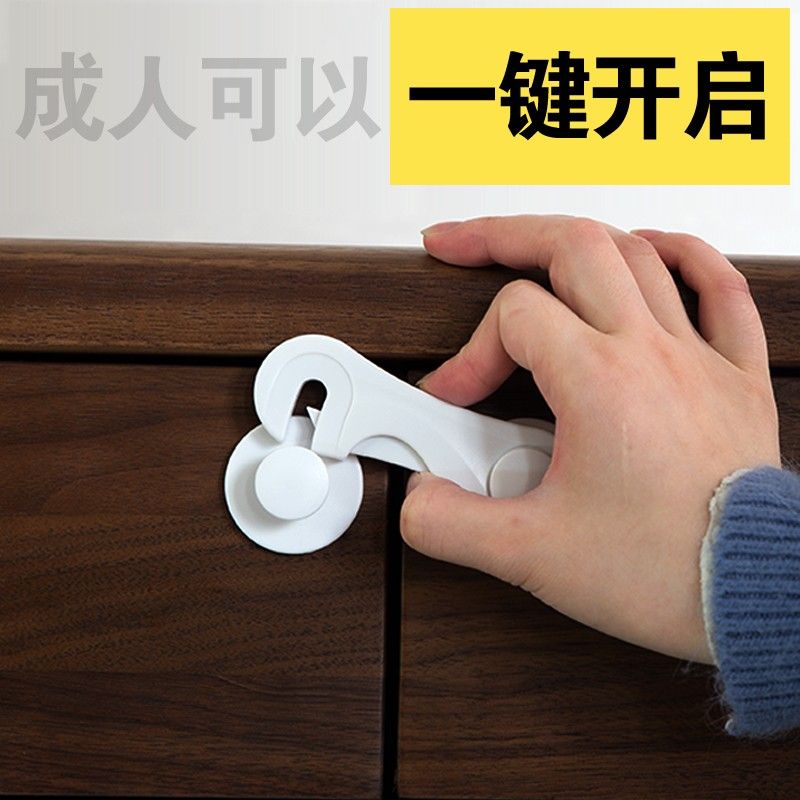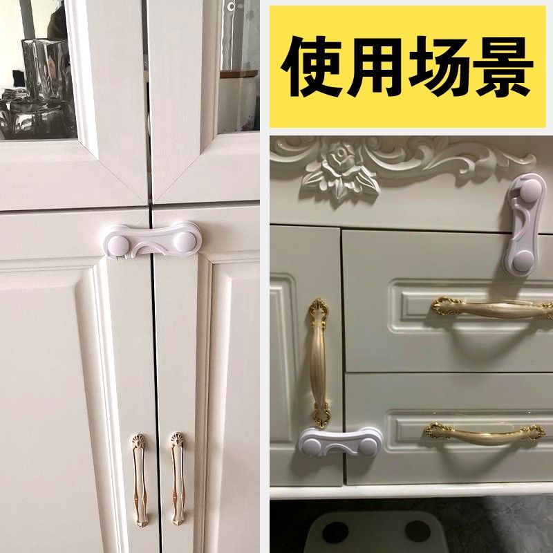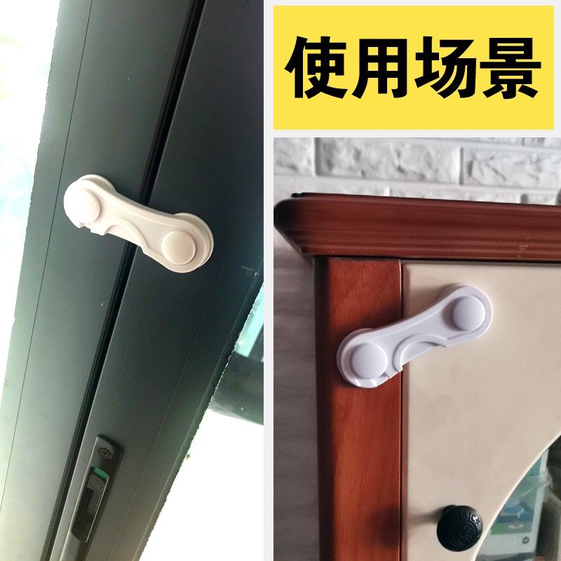 奥百4只儿童安全移门锁橱门锁推拉门窗锁平移铝合金门窗小孩防坠落卡扣宝宝安全防护锁扣免打孔对开门柜门锁 橱柜门锁【4只】