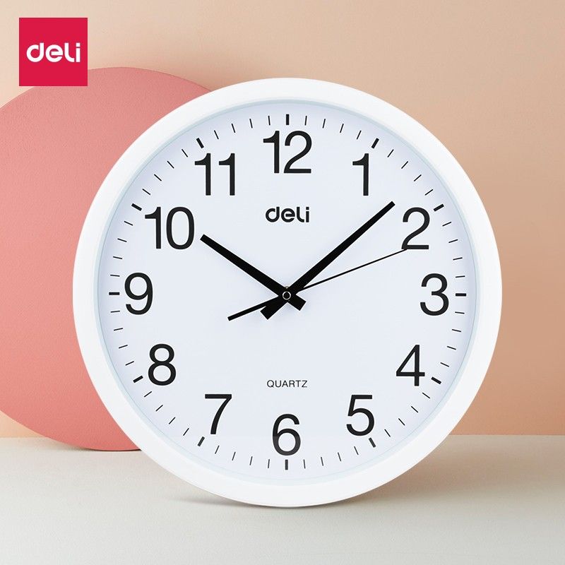 得力9005挂钟(黑)(只)30cm(12寸)1个挂钟钟表 挂式无噪音钟表(颜色随机)