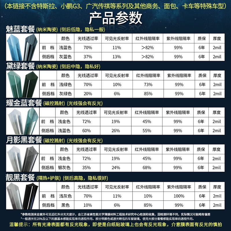 中国航天SANYOU山由帝杉汽车贴膜玻璃防爆膜隔热膜全车膜太阳膜汽车防爆膜 魅蓝套餐 全车套餐