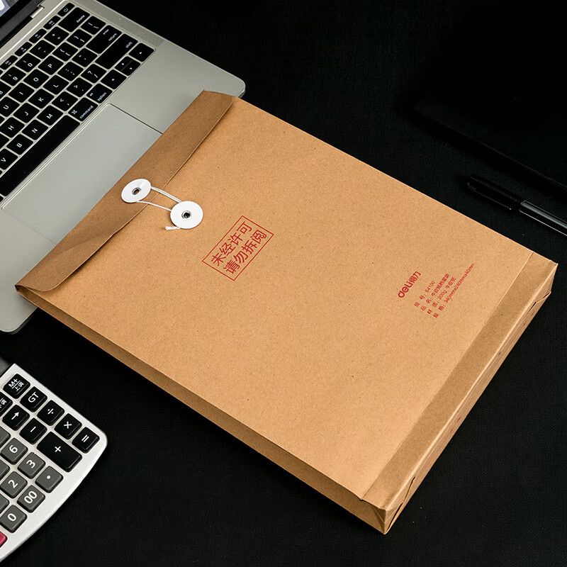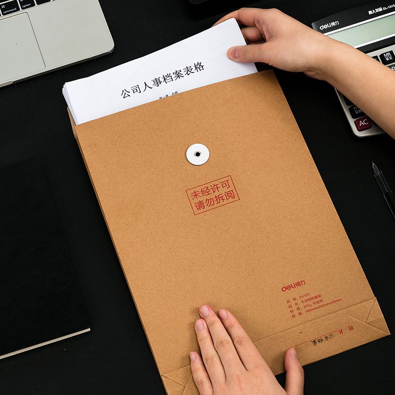 得力(deli)A4混浆200g牛皮纸档案袋侧宽4cm标书合同文件资料袋票据收纳袋 64100