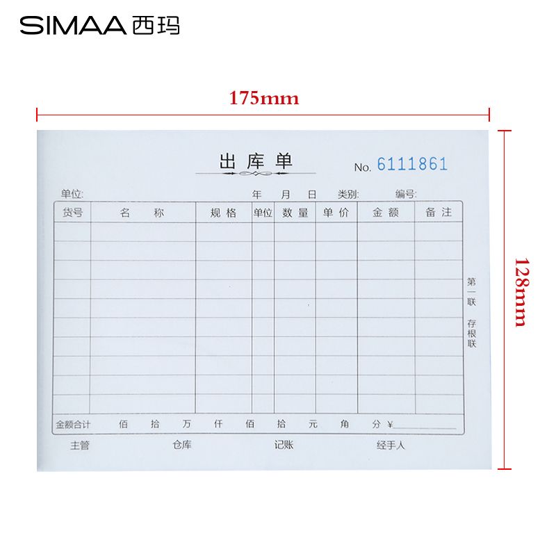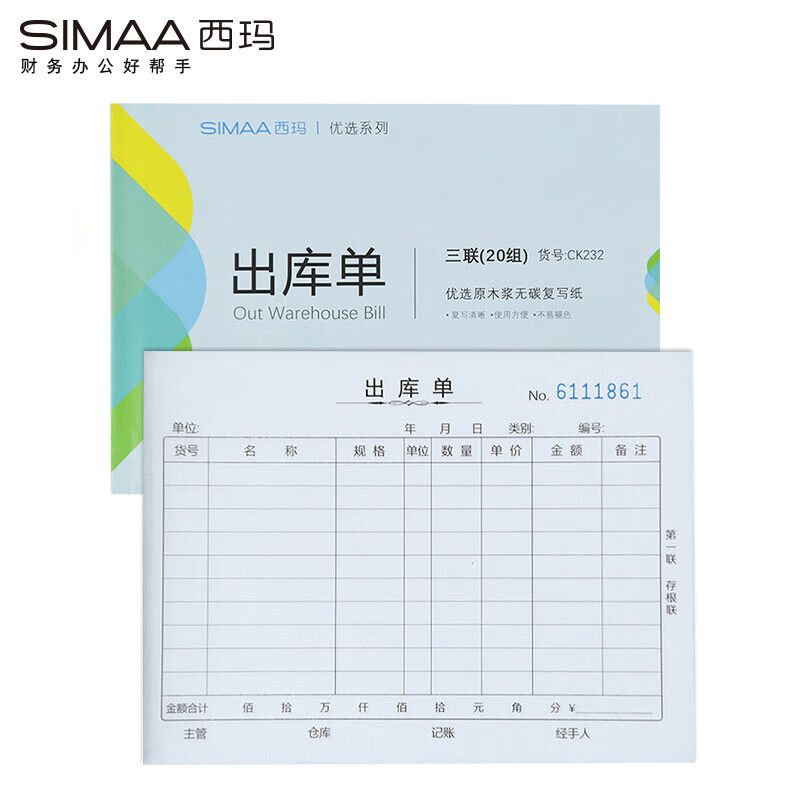 西玛(SIMAA)10本装三联出库单20组 36K 175*128mm CK232无碳复写财务单据