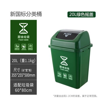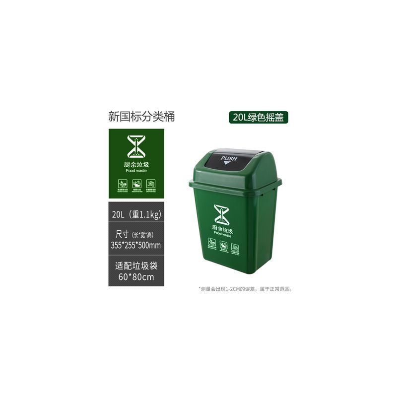 户外摇盖式翻盖分类垃圾桶公共场所办公室用厨余可回收其他垃圾桶20L