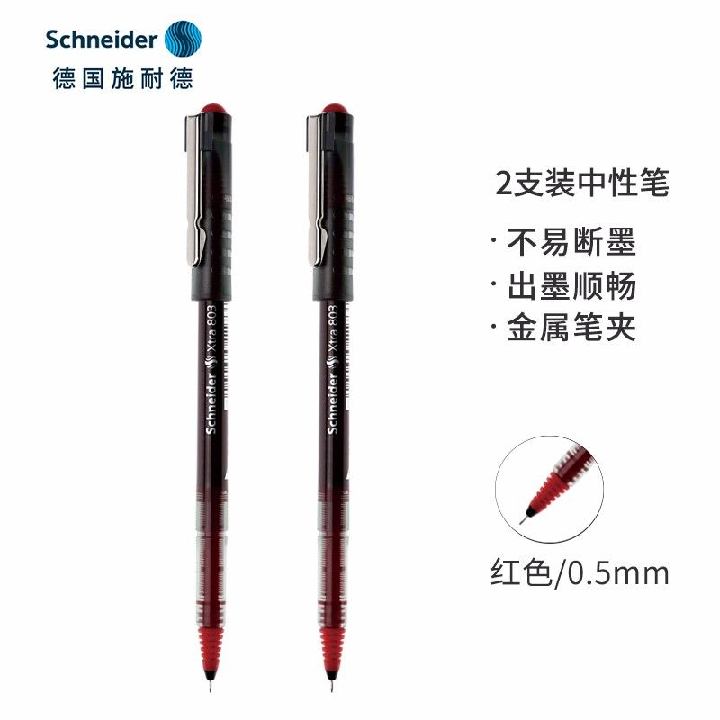 德国施耐德(Schneider)中性笔0.5mm学生考试成人办公直液式防水大容量进口水笔803 2支装