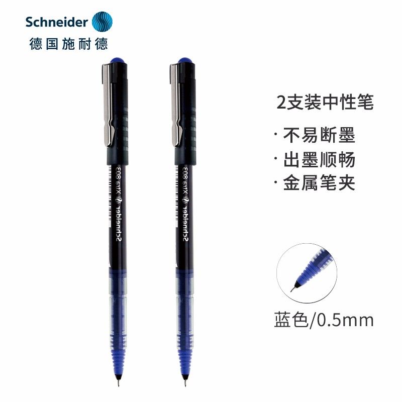 德国施耐德(Schneider)中性笔0.5mm学生考试成人办公直液式防水大容量进口水笔803 2支装