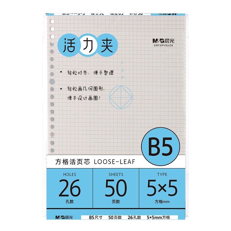 晨光(M&G)文具B5/26孔点阵活页本芯 手账本内页替芯 米色设计稿纸 极简系列本子替换内芯 50页/包