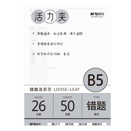 晨光(M&G)文具B5/26孔点阵活页本芯 手账本内页替芯 米色设计稿纸 极简系列本子替换内芯 50页/包