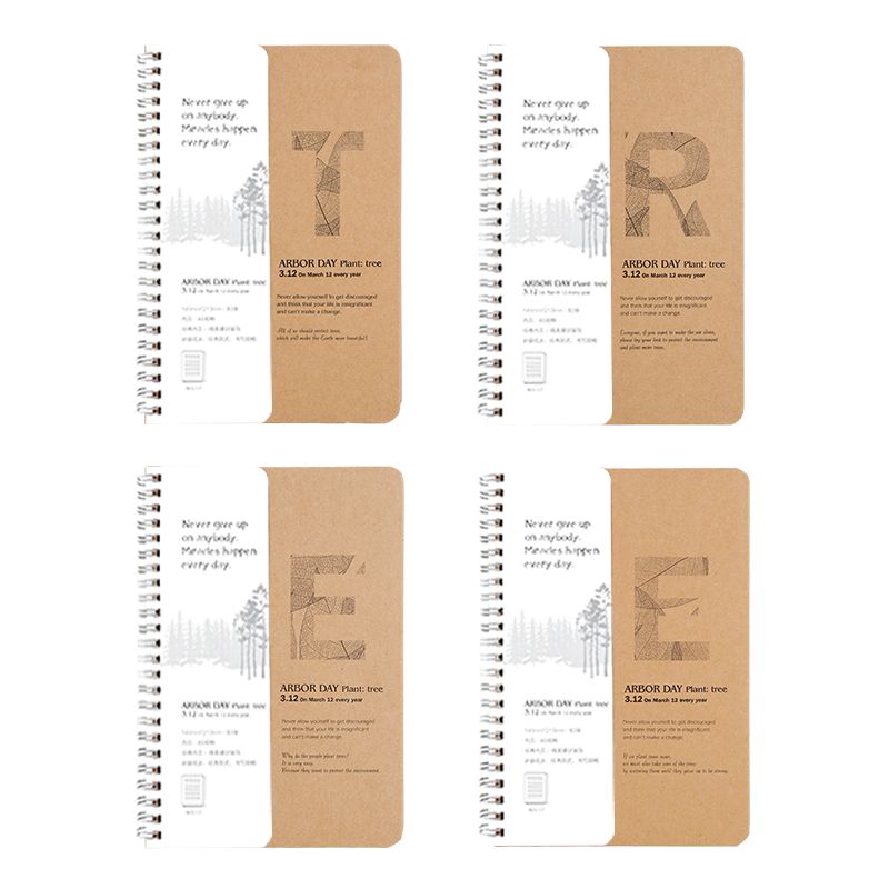 广博(GuangBo)4本装80张A5牛皮纸线圈本/螺旋装订笔记本子记事本文具4图混装 TREE FB60507