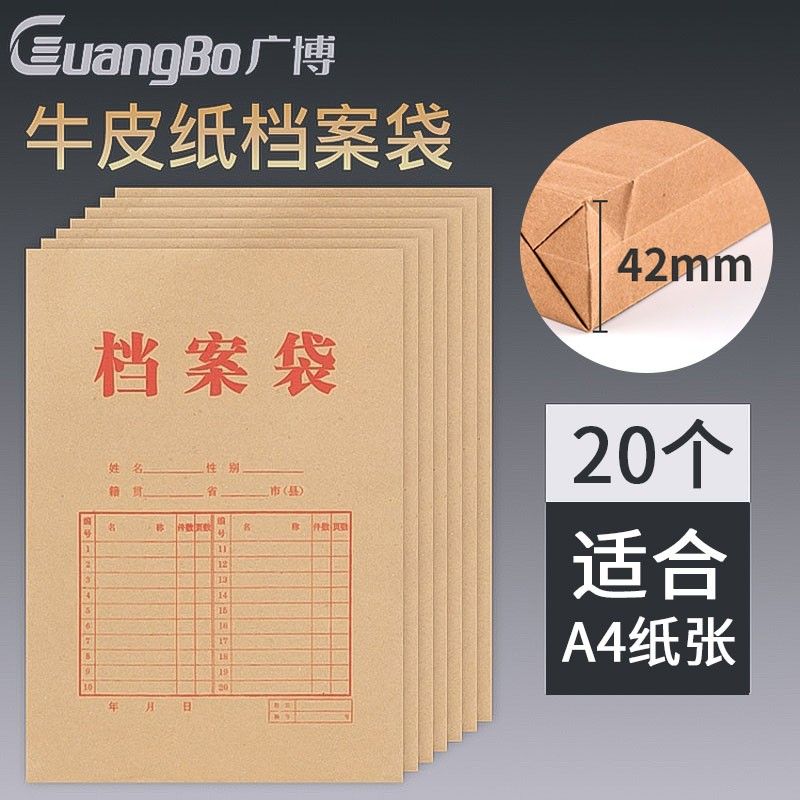 广博牛皮纸档案盒档案袋加厚文件袋A4资料盒资料册投标合同袋大号档案册文件夹收纳 20个装EN-7