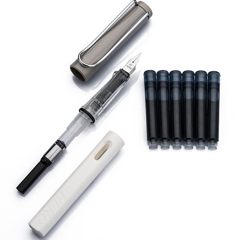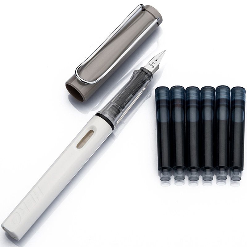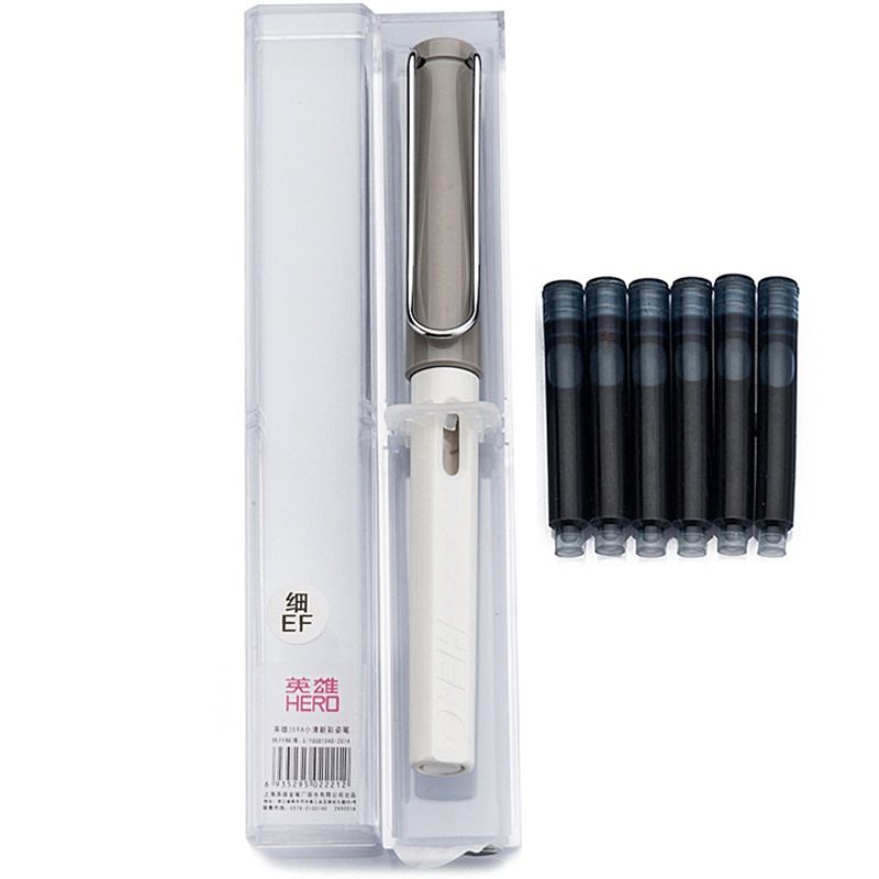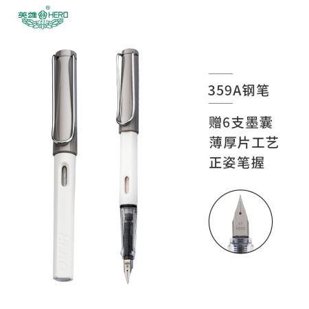 英雄(HERO)钢笔359A正姿 学生办公练字铱金钢笔签字笔 薄厚片工艺铱金笔尖(附加6支墨囊) EF尖