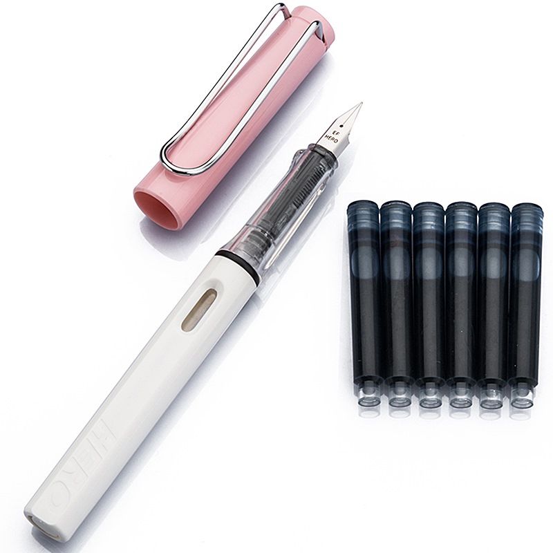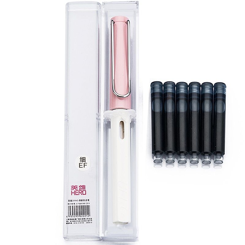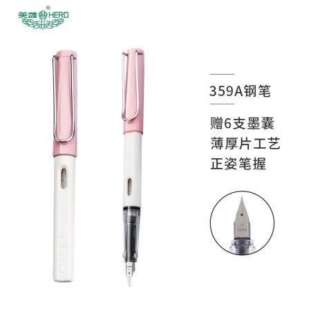 英雄(HERO)钢笔359A正姿 学生办公练字铱金钢笔签字笔 薄厚片工艺铱金笔尖(附加6支墨囊) EF尖