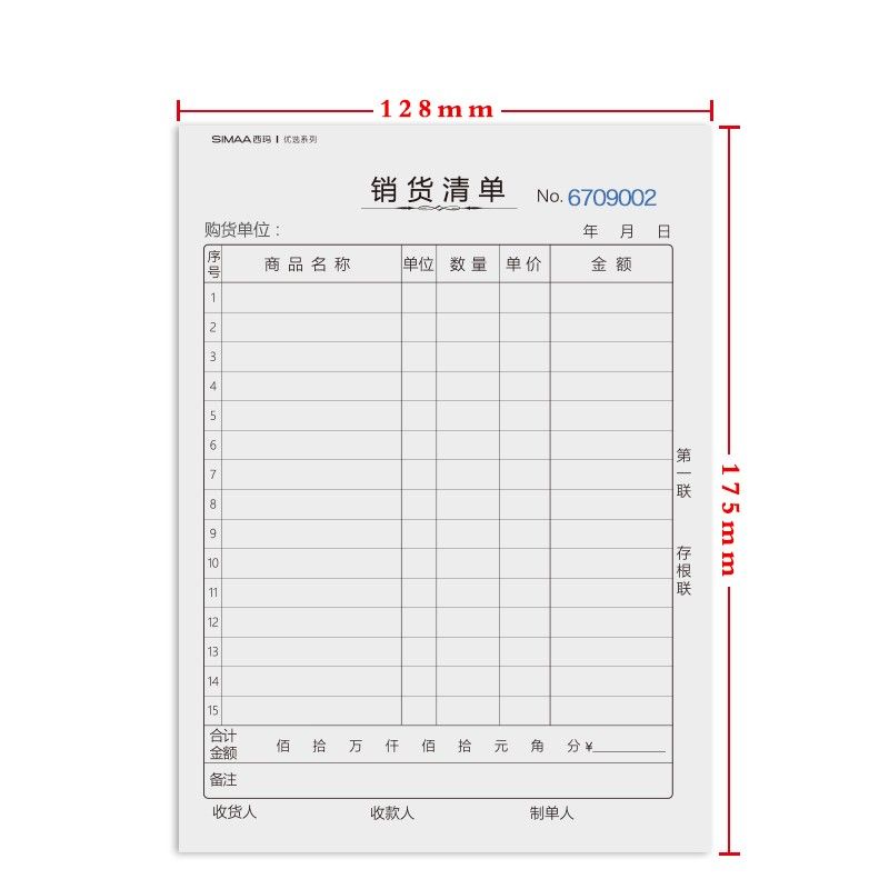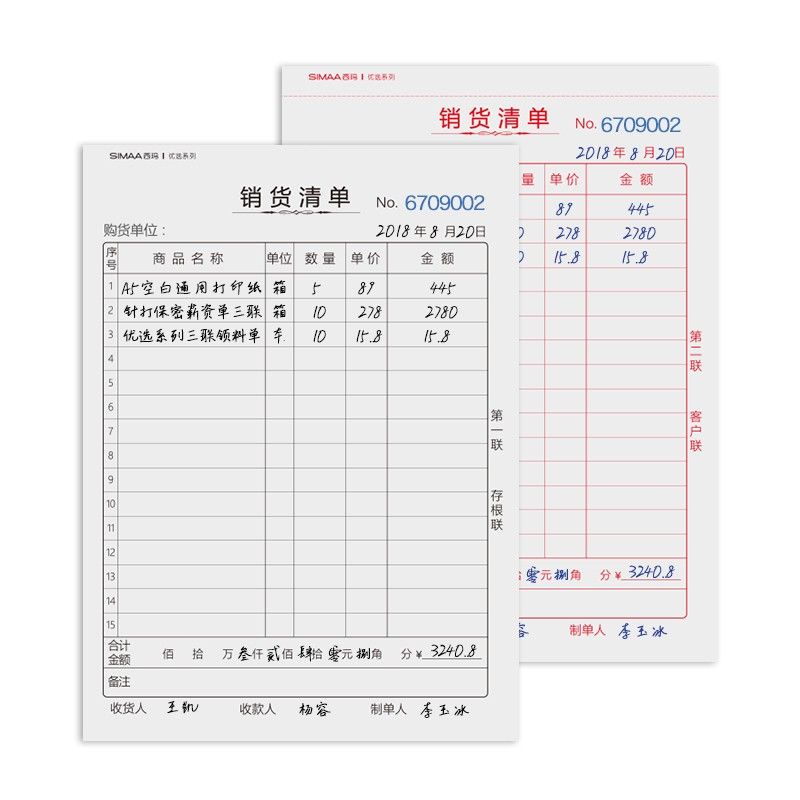 西玛(SIMAA)10本装三联出库单20组 36K 无碳复写财务单据