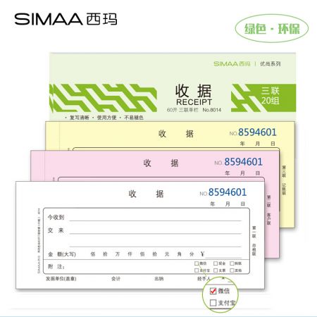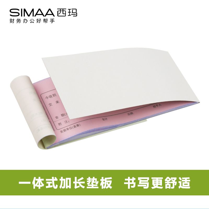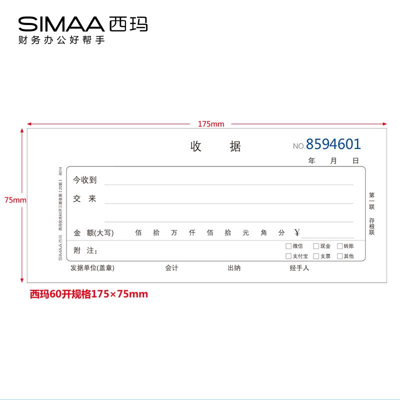 西玛(SIMAA)10本装60k收据 二联单栏财务手写收据单175*75mm 无碳复写自带垫板 单本连号设计
