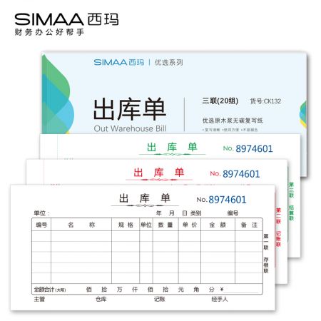 西玛(SIMAA)三联单栏收据20组 无碳复写 54K 10本装 带撕裂线 收款单收据三联本