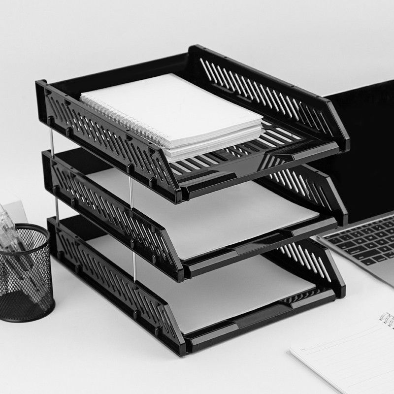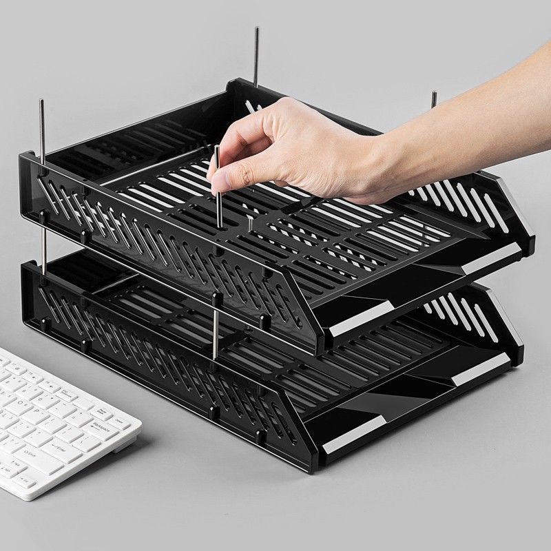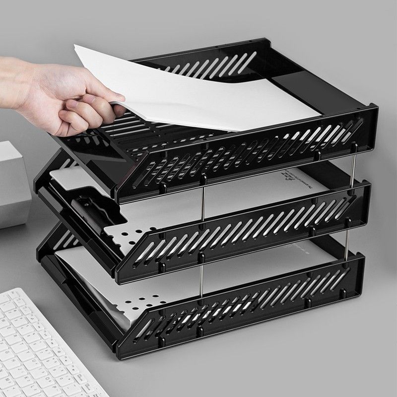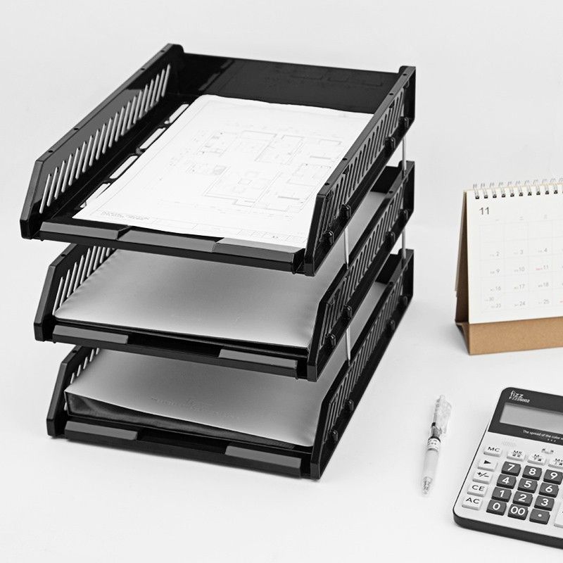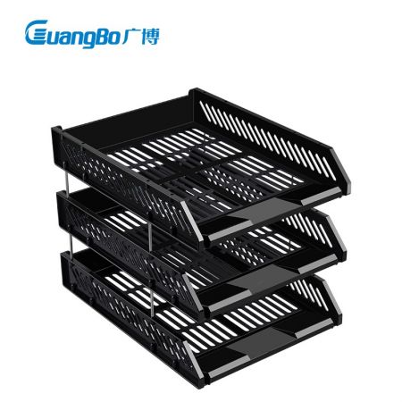 广博(GuangBo) A4三层文件盘一体式组合设计自由拆卸文件筐文件架文件座金属支架pp文件盘