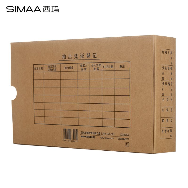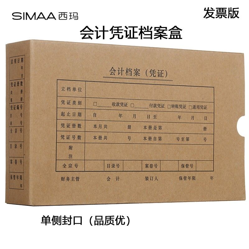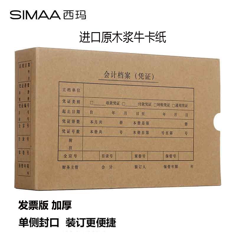 西玛(SIMAA)发票版会计凭证盒 材质加厚 260*150*50mm 10个/包 费用报销单记账凭证封面档案盒子SZ600322