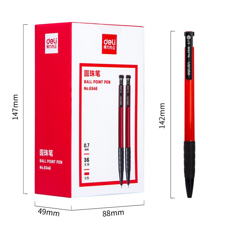 得力(deli)0.7mm 按动圆珠笔中油笔 软胶握手原子笔36支/盒 办公用品