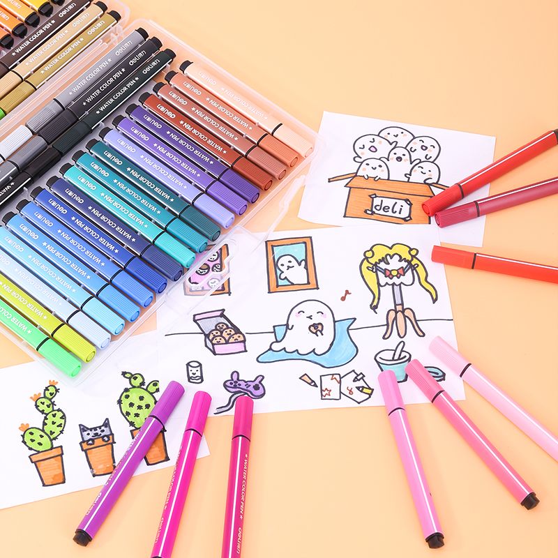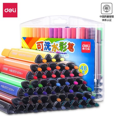 得力(deli)可水洗水彩笔 学生儿童画画 绘画勾线涂色颜色文具玩具美术用品画材