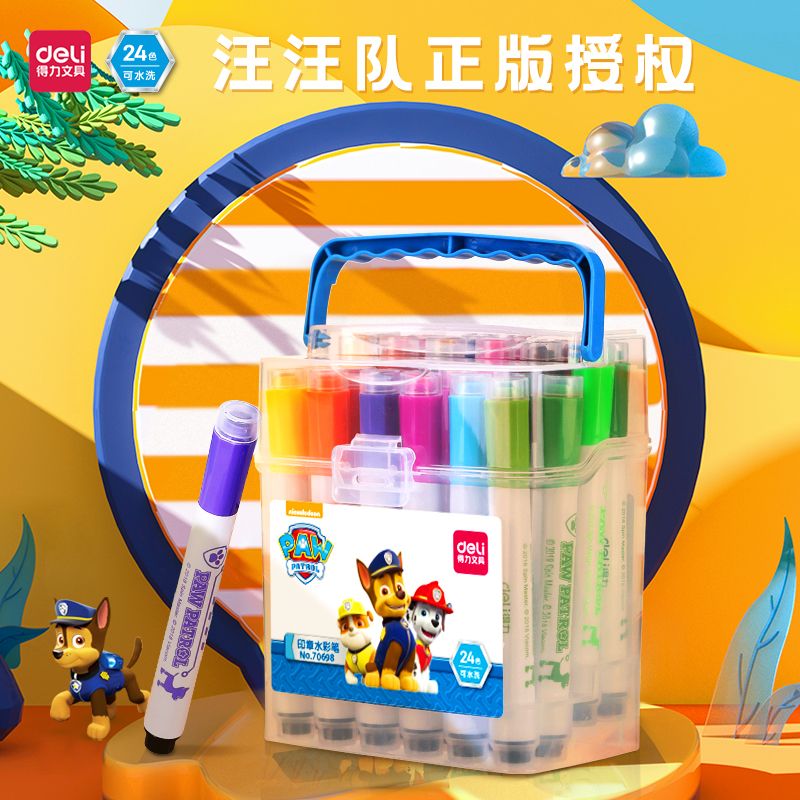 得力(deli)汪汪队立大功 可水洗印章头学生水彩笔 儿童绘画笔