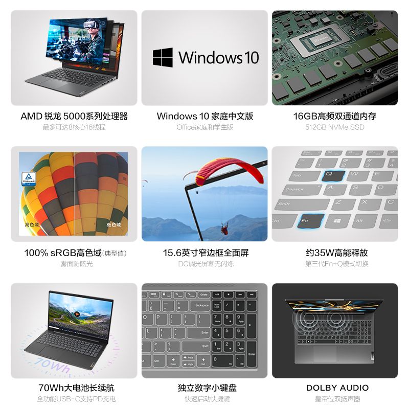 联想小新Air15锐龙版性能轻薄本15.6英寸全面屏轻薄笔记本电脑(8核R7-5700U 16G 512G 高色域)深空灰