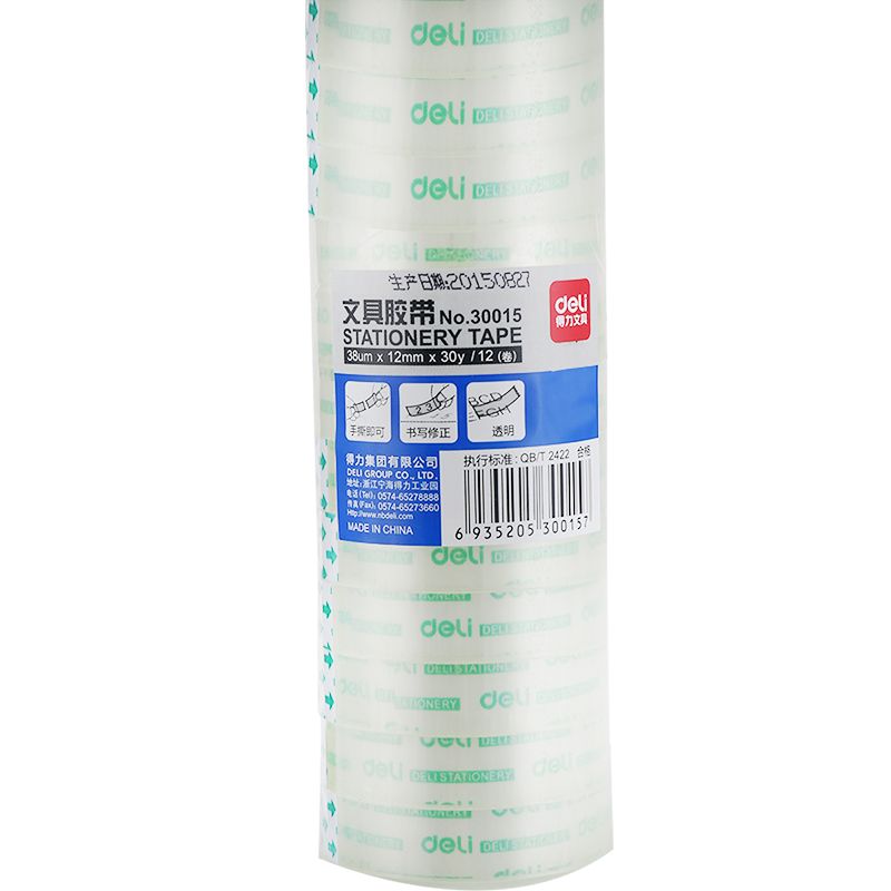得力学生文具胶带/小胶带 12mm*30y(27.4m/卷)12卷/筒 30015