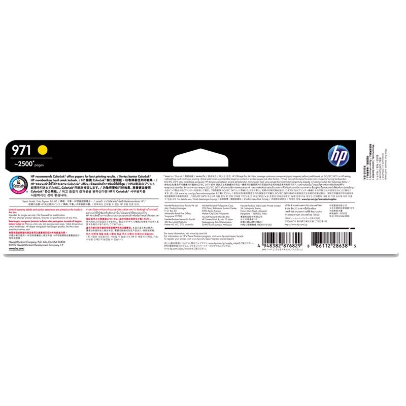 惠普(HP) CN624AA HP 971 Officejet 黄色墨盒 (适用HP X451dn/X451dw/X551dw/X476dn/X476dw/X576dw)